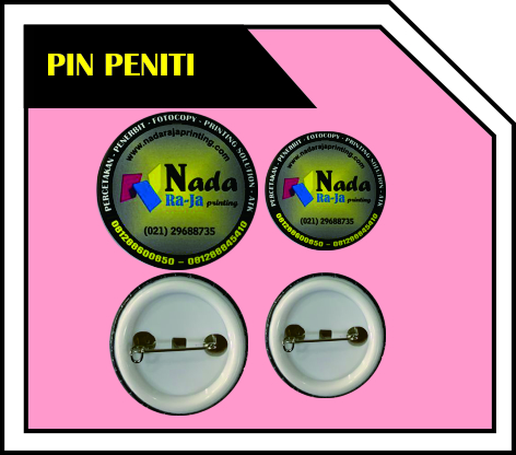 Tapi, Pin ternyata tidak hanya digunakasn di atas tas atau baju ketika dipakai. Karena Pin terdiri dari beberapa jenis, Pin peniti, Pin Gantungan kunci, pin pembuka tutup botol, bahkan terdapat pin boneka yang sangat menarik sekali untuk dipakai. Nada Raja Printing memiliki layanan cetak pin murah. Maka dari itu Anda bisa datang langsung ke percetakan kami yaitu di Jakarta. Jika Anda sedang sibut ataupun tidak punya waktu untuk ke tempat kami, Anda bias menggunakan layanan Nada Raja Printing Online.